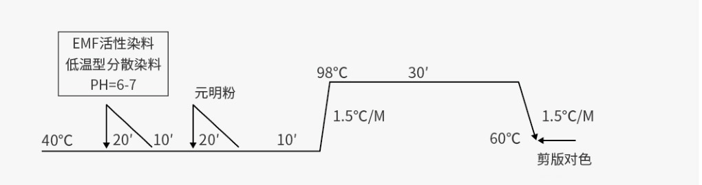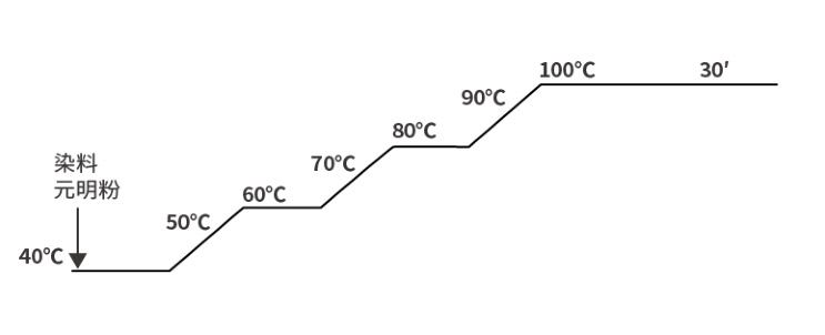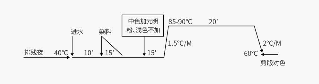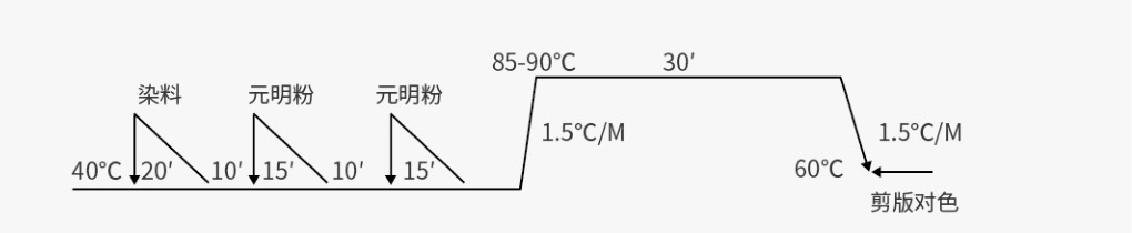 Note: Depending on the equipment, the process needs to be adjusted. This process is suitable for overflow, steam liquid, steam flow equipment dyeing.